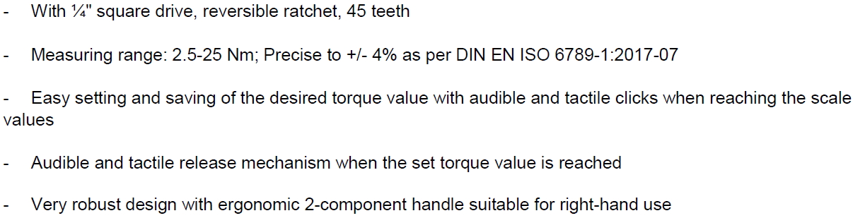 | 6695582 מפתח מומנט מתכוונן ''1/4 - WERA CLICK TORQUE A 5 - 2.5NM ~ 25NM | WERA | מפתח מומנט מתכוונן ''1/4 - WERA CLICK TORQUE A 5 - 2.5NM ~ 25NM ♦ ידית אחיזה ארגונומית... כלי עבודה ידניים » מפתחות ובוקסות | כמות |