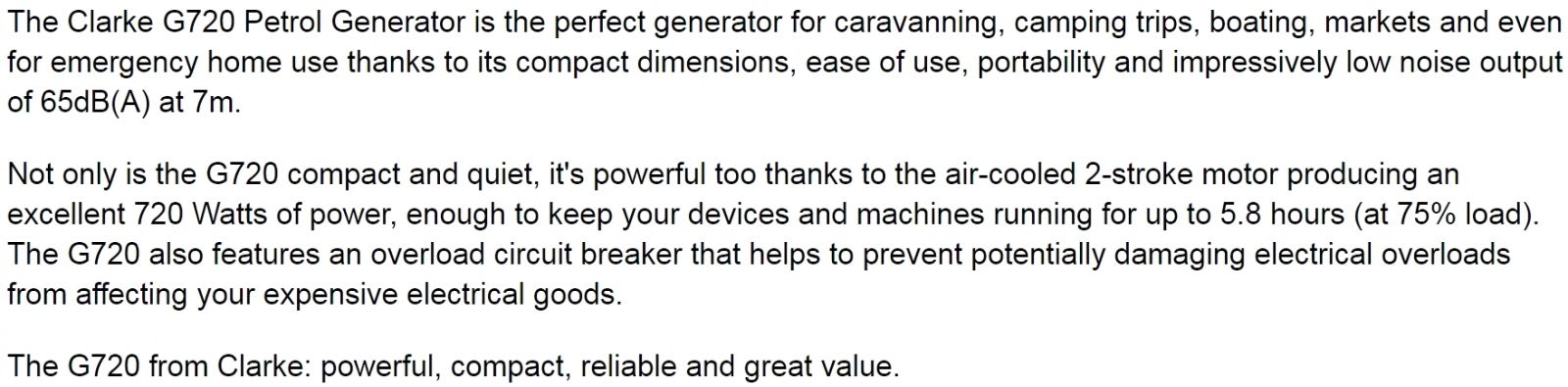 | 58851IS גנרטור מקצועי - CLARKE G720 - 720W | CLARKE | גנרטור מקצועי - CLARKE G720 - 720W ♦ הספק עבודה : 720 וואט♦ סוג מנוע : שתי פעימות♦ נפח מי... כלי עבודה נטענים / חשמליים » קומפרסורים , גנרטורים ואביזרים | לא ניתן להזמין - אזל המלאי |