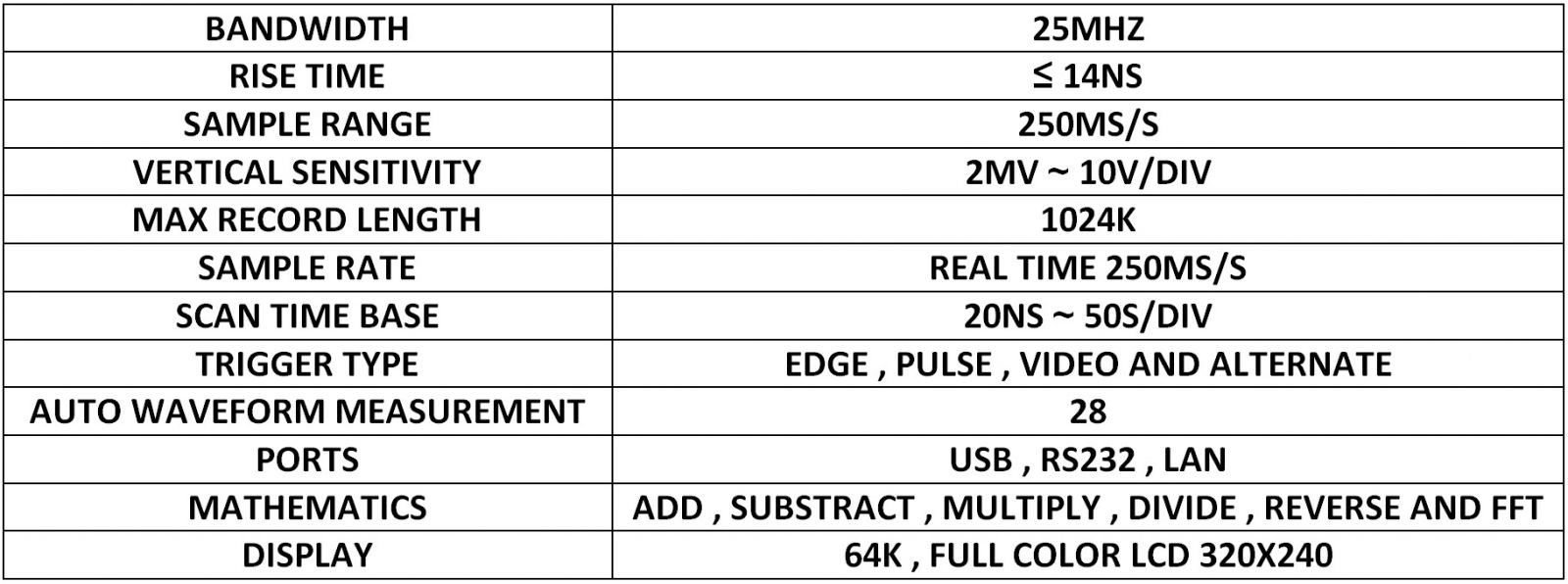 אוסילוסקופ שולחני דיגיטלי - 2 ערוצים - 25MHZ - 250MSPS