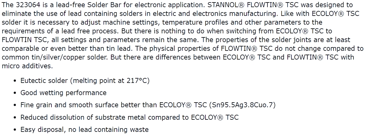 | 1917031 מוט בדיל ללא עופרת 217°C - משקל 200 גרם - STANNOL 323064 | STANNOL | מוט בדיל ללא עופרת 217°C - משקל 200 גרם - STANNOL 323064 ♦ תרכובת : Sn95.5Ag3.8Cu0.7♦ דחיסות ... מלחמים ותחנות הלחמה » בדיל וחומרי הלחמה לאלקטרוניקה | כמות |
