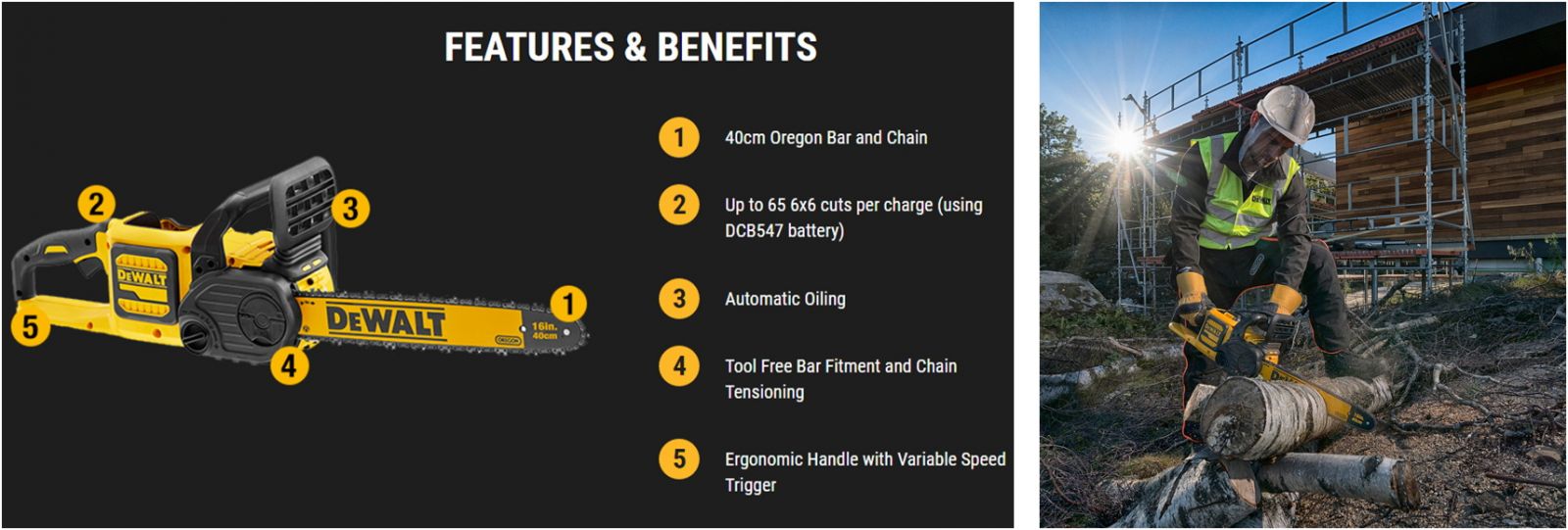 מסור שרשרת מקצועי נטען DEWALT DCM575X1 - 18V DEWALT ועוד כלי עבודה נטענים / חשמליים. לחצו למיפרט טכני מלא. צרו קשר לייעוץ מקצועי: 04-8520233