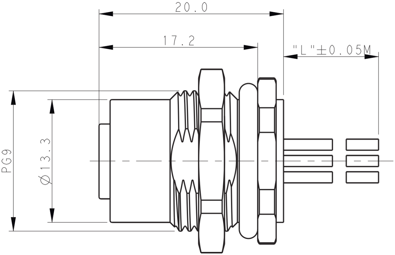 מחבר M12 לסנסור - נקבה מחווט לפנל - שלושה מגעים