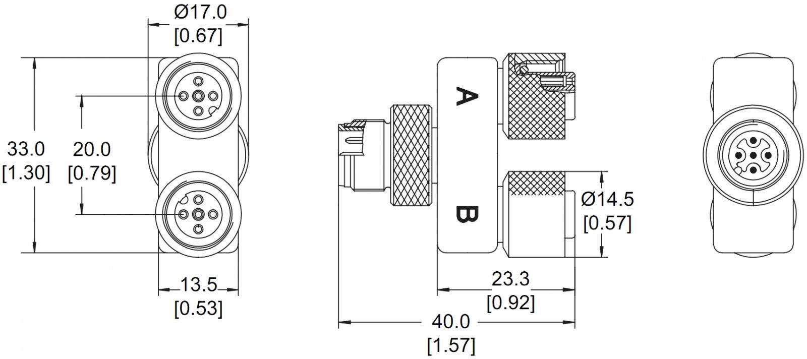 ♦ צד א' : מחבר אחד M12 זכר חמישה מגעים