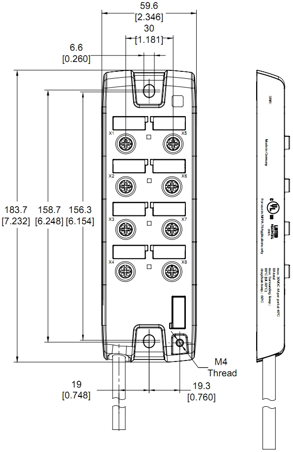 קופסת הסתעפות לסנסורים - שמונה יציאות M12 - כבל 5 מטר