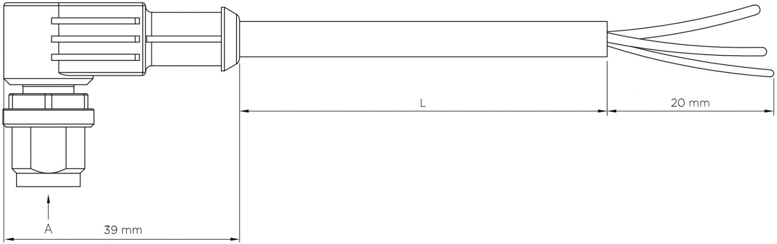 כבל לסנסורים - זכר זוויתי M12 - שמונה מגעים - 1.5 מטר