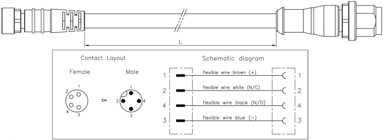 ♦ צד א' : מחבר M12 זכר ארבעה מגעים