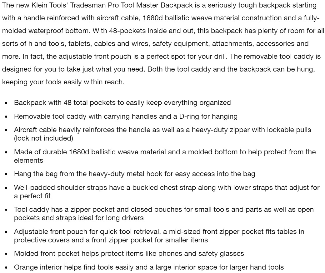 | 0311092 תיק גב מוגן מים לכלי עבודה - KLEIN TOOLS 55485 - 495X343X280MM | KLEIN TOOLS | תיק גב מוגן מים לכלי עבודה - KLEIN TOOLS 55485 - 495X343X280MM ♦ עשוי מבד פוליאסטר חזק ועמיד&diams... ארגזי כלים ופתרונות אחסון » ארגזי כלים , מזוודות טכנאים ותיקים לכלי עבודה | כמות |