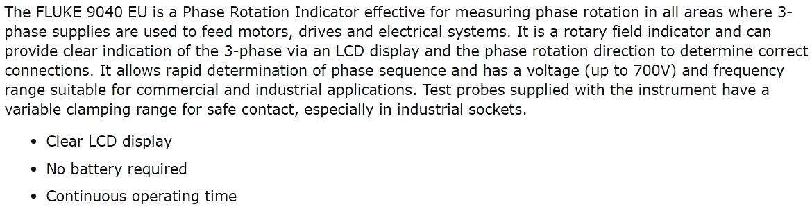 | 9392242 בודק סדר פאזות מקצועי פלוק - FLUKE 9040 | FLUKE | בודק סדר פאזות מקצועי פלוק - FLUKE 9040 ... ציוד בדיקה ומכשירי מדידה » ציוד בדיקה לחשמלאים | כמות |