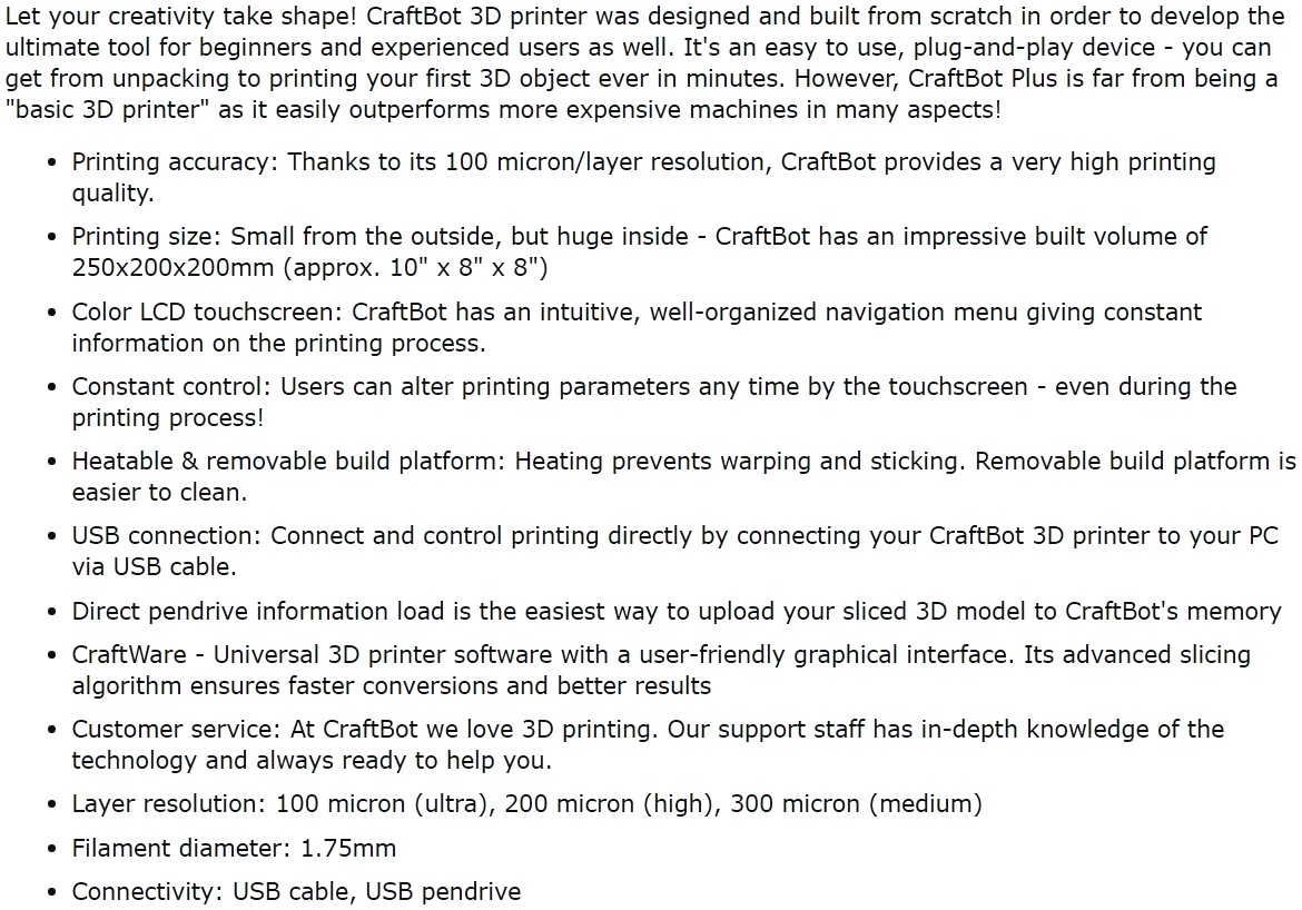 מדפסת תלת מימד - CRAFTBOT PLUS                    ...