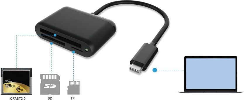 קורא כרטיסי זיכרון אוניברסלי USB TYPE C