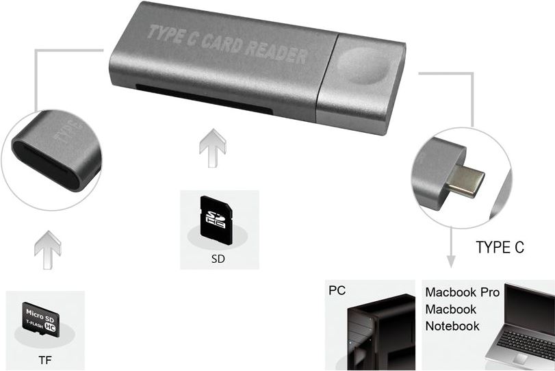 מיני קורא כרטיסי זיכרון אוניברסלי USB TYPE C
