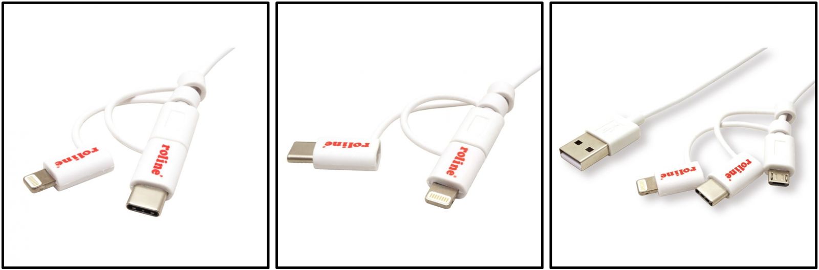 כבל 1M - USB A ~ LIGHTNING / MICRO USB / USB TYPE C ROLINE ועוד כבלים ואביזרים לכבלים. לחצו למיפרט טכני מלא. צרו קשר לייעוץ מקצועי: 04-8520233 כבל 1M - USB A ~ LIGHTNING / MICRO USB / USB TYPE C