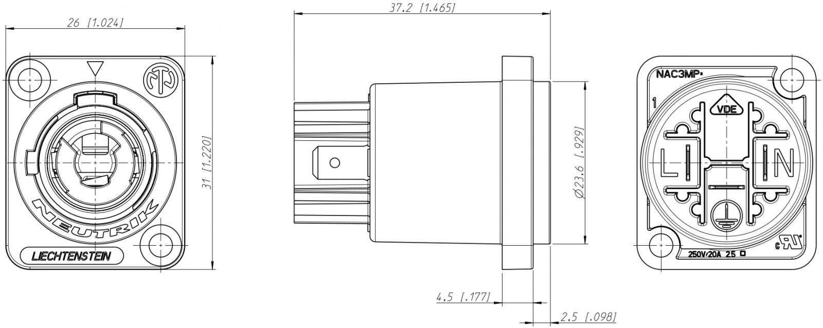 מחבר מתח - נקבה לפנל - NEUTRIK POWERCON - NAC3MPA-1 NEUTRIK ועוד קונקטורים, מחברים ומתאמים. לחצו למיפרט טכני מלא. צרו קשר לייעוץ מקצועי: 04-8520233