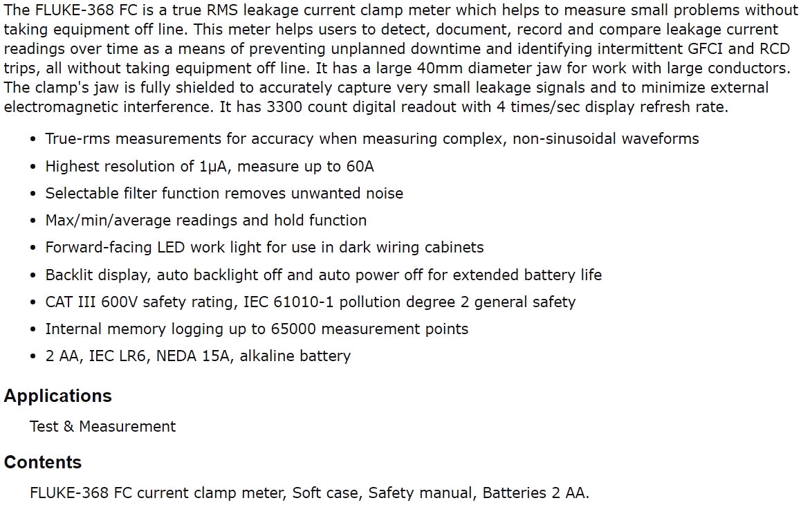 | 5490362 רב מודד צבת זרם פלוק - FLUKE 368 FC | FLUKE | רב מודד צבת זרם פלוק - FLUKE 368 FC למפרט מלא לחץ כאן ... ציוד בדיקה ומכשירי מדידה » רבי מודדים וצבתות זרם | כמות |