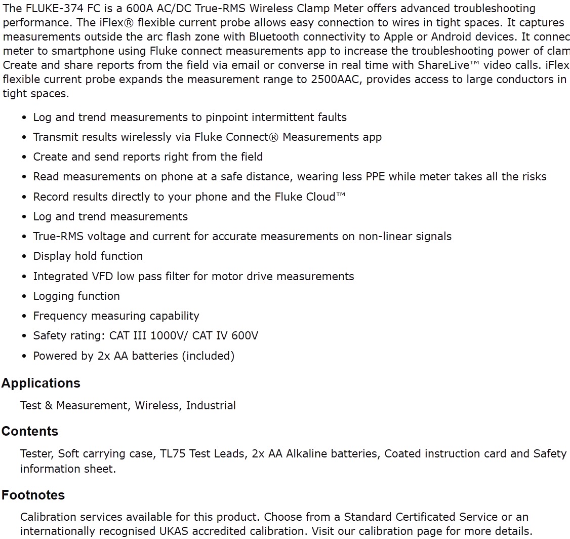 | 1437052 רב מודד צבת זרם פלוק - FLUKE 374 FC | FLUKE | רב מודד צבת זרם פלוק - FLUKE 374 FC למפרט מלא לחץ כאן ... ציוד בדיקה ומכשירי מדידה » רבי מודדים וצבתות זרם | כמות |