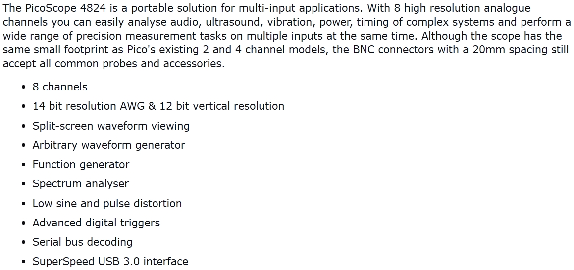 | 9482932 אוסילוסקופ מבוסס מחשב - PICOSCOPE 4824 - 8CH - 20MHZ | PICO TECHNOLOGY | אוסילוסקופ מבוסס מחשב - PICOSCOPE 4824 - 8CH - 20MHZ &... ציוד בדיקה ומכשירי מדידה » אוסצילוסקופים למעבדה | לא ניתן להזמין - אזל המלאי |