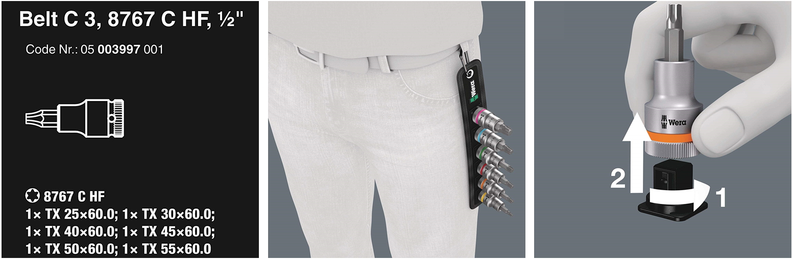סט ביטים כוכב למפתח ''1/2 - WERA ZYKLOP BELT C 3 WERA ועוד כלי עבודה נטענים / חשמליים. לחצו למיפרט טכני מלא. צרו קשר לייעוץ מקצועי: 04-8520233