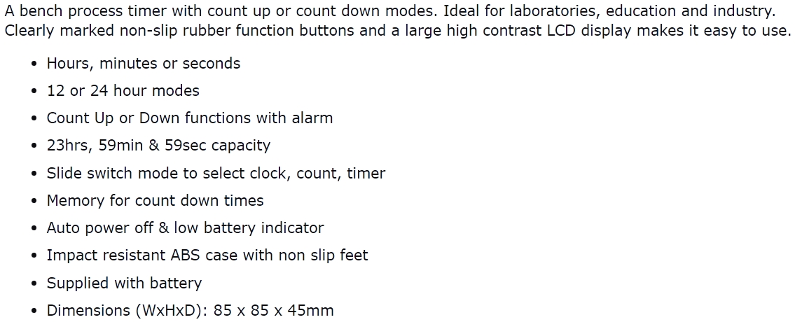 | 2936013 שעון עצר (סטופר) דיגיטלי שולחני למעבדות - TM-12 | ATP | שעון עצר (סטופר) דיגיטלי שולחני למעבדות - TM-12 ♦ גוף ABS חזק ועמיד במיוחד♦ תצוגת LCD דיגיטלית&... ציוד בדיקה ומכשירי מדידה » ציוד בדיקה - שונות | לא ניתן להזמין - אזל המלאי |