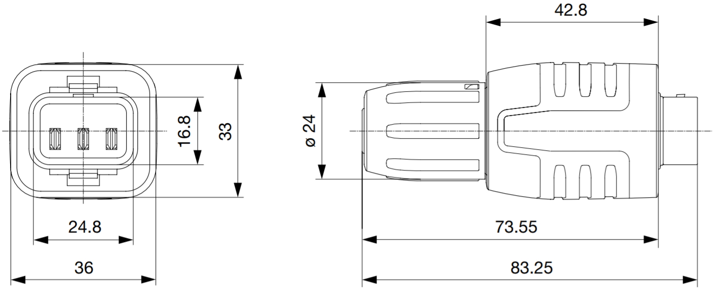 מחבר IEC IP67 / IP69K - נקבה להברגה לכבל - בידוד שחור