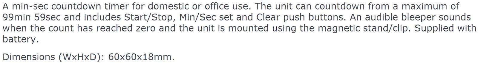 | 9812294 טיימר דיגיטלי | ATP | טיימר דיגיטלי ♦ טווח : עד 99 דקות ו 59 שניוות♦ מסך LCD גדול♦ מידות : 60X60... ציוד בדיקה ומכשירי מדידה » ציוד בדיקה - שונות | לא ניתן להזמין - אזל המלאי |