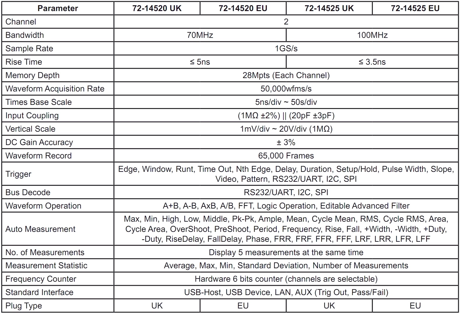 אוסצילוסקופ - 2 ערוצים - TENMA 72-14525 - 100MHZ - 1GSPS TENMA ועוד ציוד בדיקה ומכשירי מדידה. לחצו למיפרט טכני מלא. צרו קשר לייעוץ מקצועי: 04-8520233