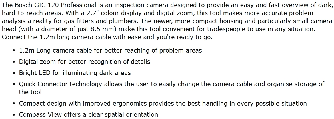 BOSCH PROFESSIONAL CORDLESS INSPECTION CAMERA - GIC 120