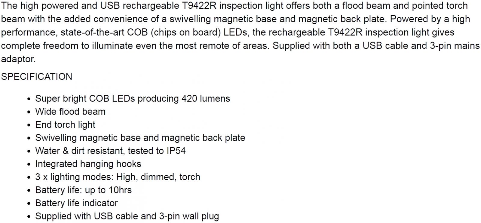 | 7631192 פנס עבודה תעשייתי נטען - CK TOOLS T9422R - 420 LUMENS | CK TOOLS | פנס עבודה תעשייתי נטען - CK TOOLS T9422R - 420 LUMENS ♦ עוצמת הארה : 450 לומנס♦ רמת אטי... נורות , פנסים ומוצרי תאורה » פנסים | לא ניתן להזמין - אזל המלאי |