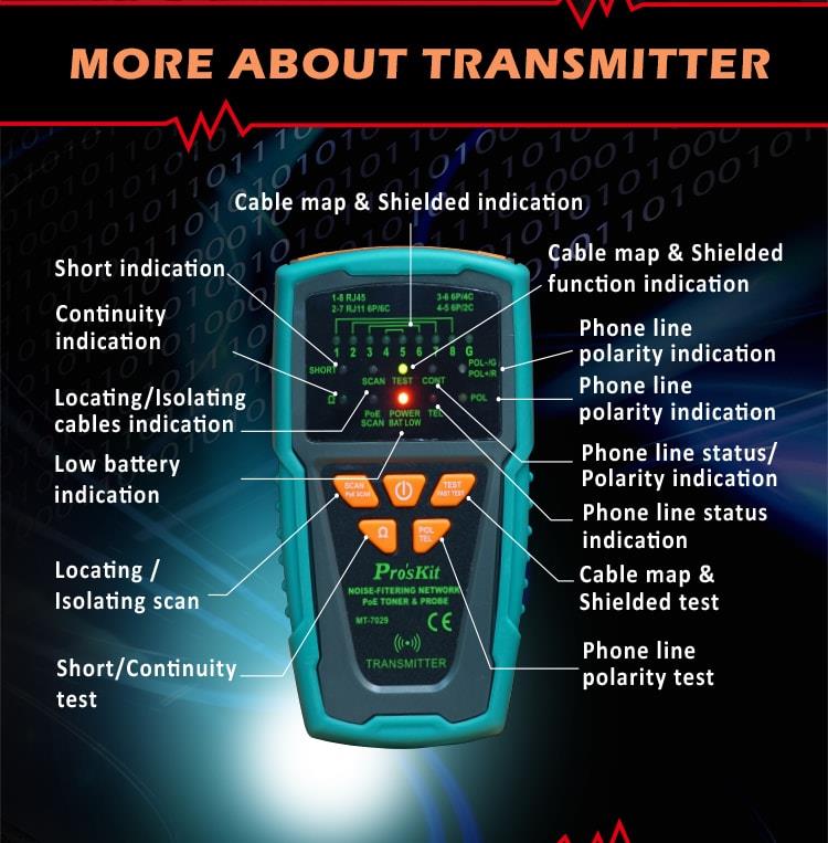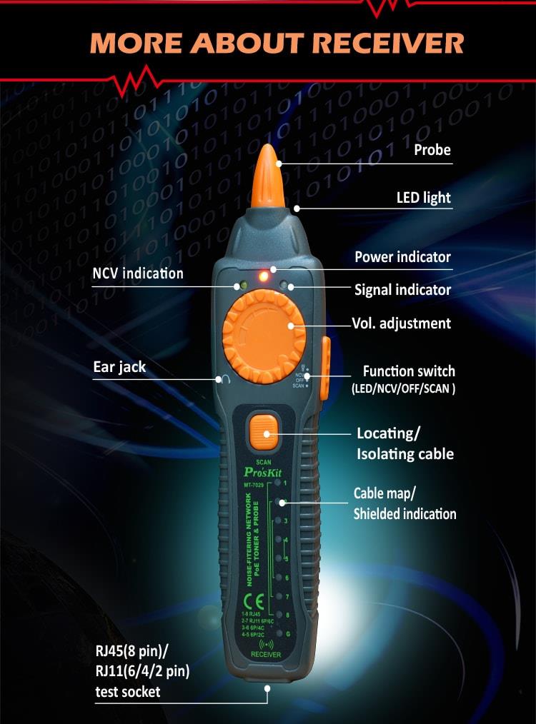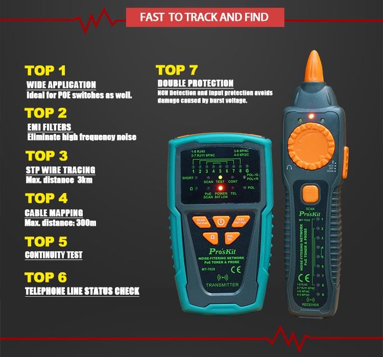 מאתר ובודק כבלי תקשורת מקצועי - PRO'SKIT MT-7029 PROSKIT ועוד ציוד בדיקה ומכשירי מדידה. לחצו למיפרט טכני מלא. צרו קשר לייעוץ מקצועי: 04-8520233
