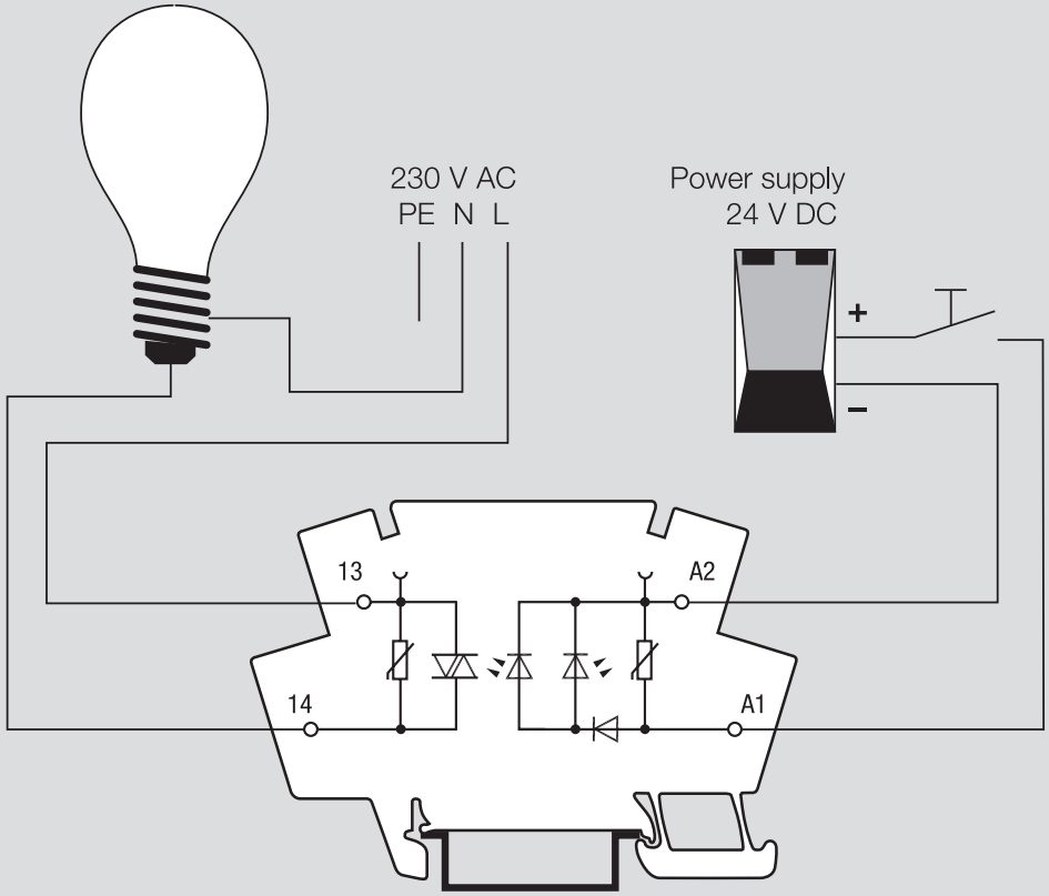 ממסר מצב מוצק עם תושבת לפס דין - 120VAC / 24VAC~230VAC - 100MA