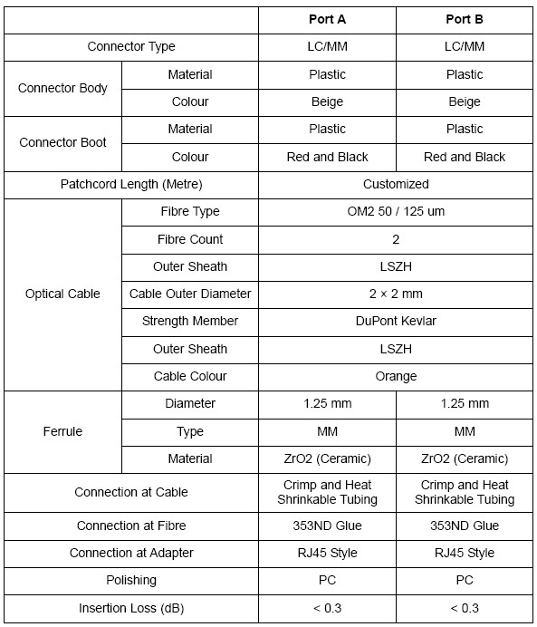 PEO-SIGNAL LC-LC OM2 DUPLEX FIBRE PATCHCORDS PEO-SIGNAL LC-LC OM2 DUPLEX FIBRE PATCHCORDS
