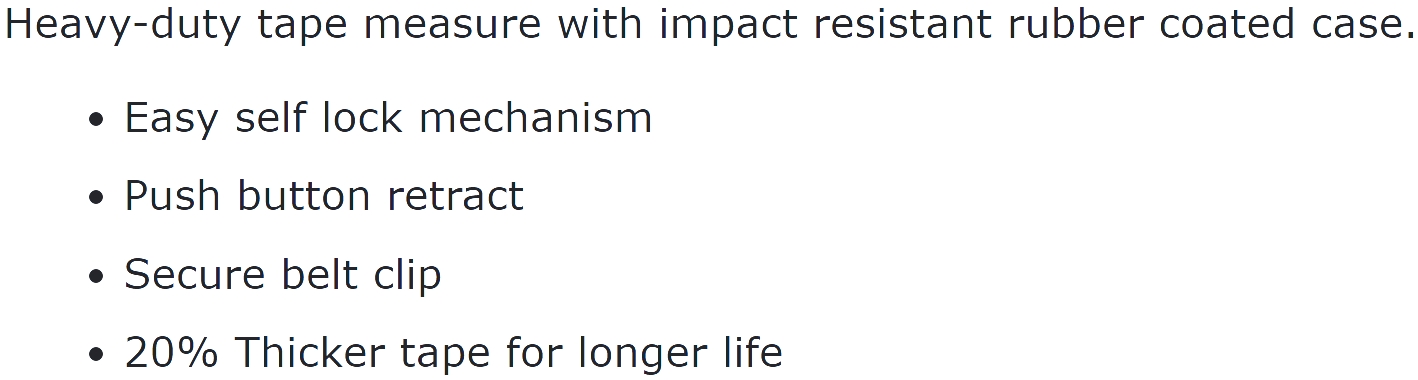 | 9603833 מודד מרחק (מטר) מקצועי - 8 מטר - DURATOOL D03183 | DURATOOL | מודד מרחק (מטר) מקצועי - 8 מטר - DURATOOL D03183 ♦ גוף מגומי HEAVY DUTY♦ מנגנון EASY SEL... כלי עבודה ידניים » כלי מדידה שונים | כמות |