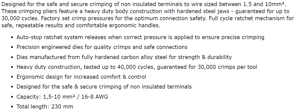 | 8988151 לוחץ רצ'ט לנעלי כבל לא מבודדות - CK TOOLS 430025 - 1.5MM² ~ 10MM² | CK TOOLS | לוחץ רצ'ט לנעלי כבל לא מבודדות - CK TOOLS 430025 - 1.5MM² ~ 10MM² ♦ בנייה איכותית המבטיחה עד 40... כלי עבודה ידניים » לוחצים לכבלים | כמות |