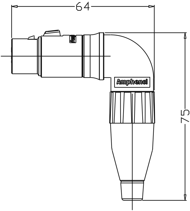 מחבר XLR נקבה זוויתי להלחמה לכבל - 3 מגעים - AMPHENOL AC3FR