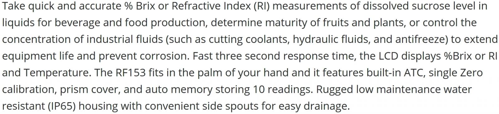 | 3478103 רפרקטומטר ידני דיגיטלי - EXTECH RF153 BRIX METER | EXTECH INSTRUMENTS | רפרקטומטר ידני דיגיטלי - EXTECH RF153 BRIX METER ♦ תצוגת LCD כפולה גדולה וברורה♦ טווח מדידה : 0Br... ציוד בדיקה ומכשירי מדידה » ציוד בדיקה - שונות | כמות |