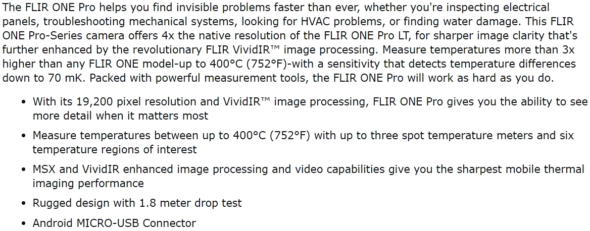 | 4456882 מצלמה תרמית - (FLIR ONE PRO ANDROID (MICRO USB | FLIR SYSTEMS | מצלמה תרמית - (FLIR ONE PRO ANDROID (MICRO USB ♦ טכנולוגית צילום MSX BLENDING♦ אפשרות צילום תמונה... ציוד בדיקה ומכשירי מדידה » מצלמות תרמיות | לא ניתן להזמין - אזל המלאי |