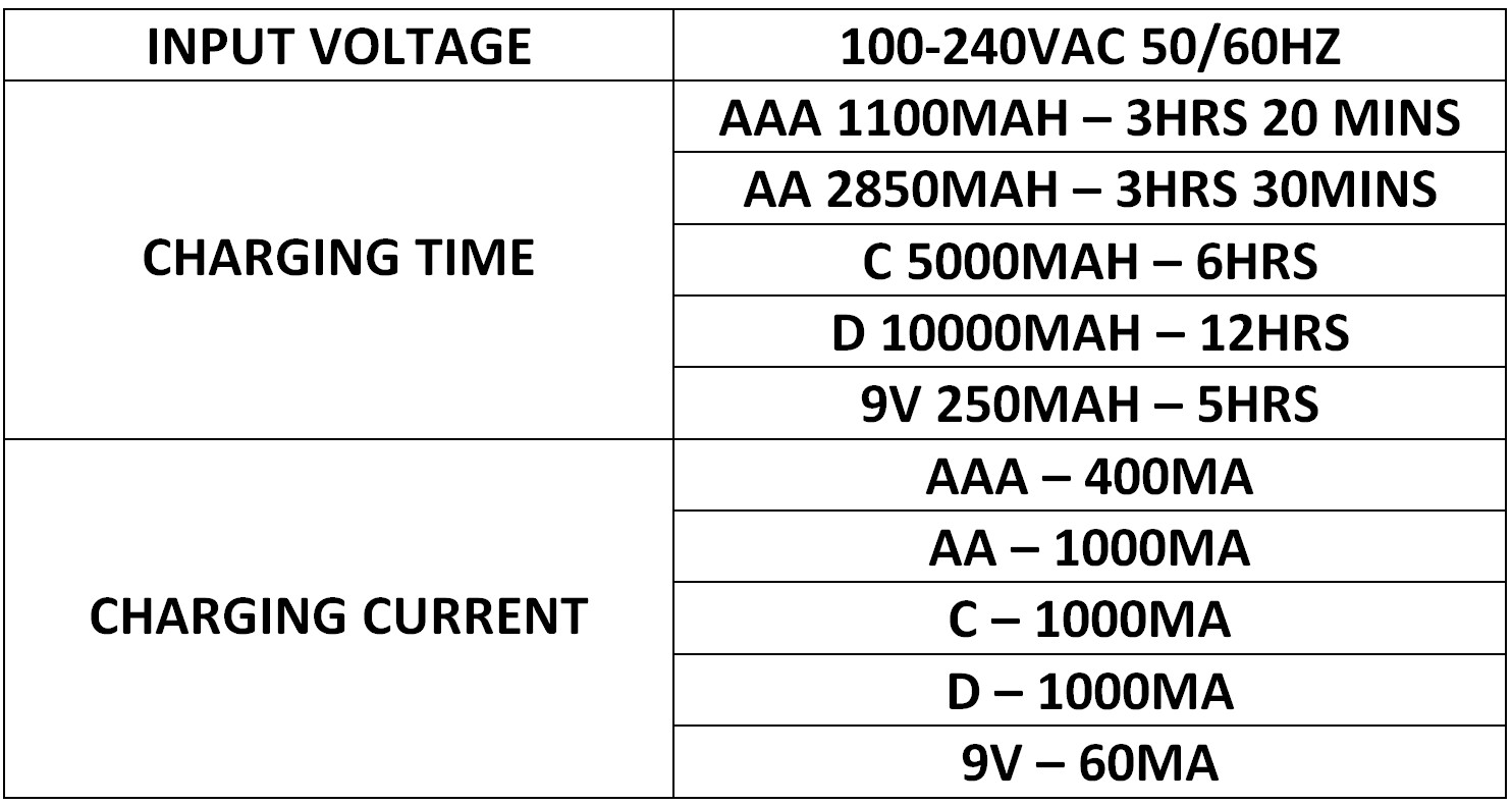 ♦ מטעין עד 4 סוללות C , D