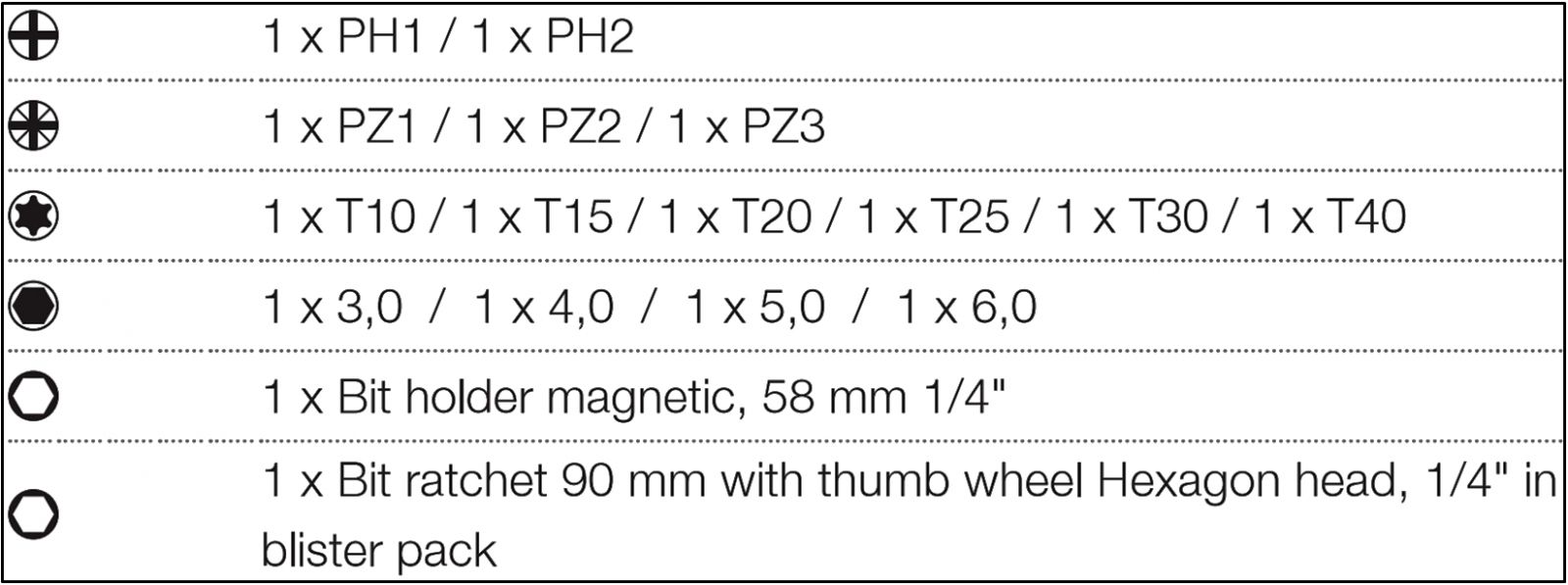 סט ביטים מקצועי למברגה - 17 יחידות - WIHA 26951 WIHA ועוד כלי עבודה נטענים / חשמליים. לחצו למיפרט טכני מלא. צרו קשר לייעוץ מקצועי: 04-8520233