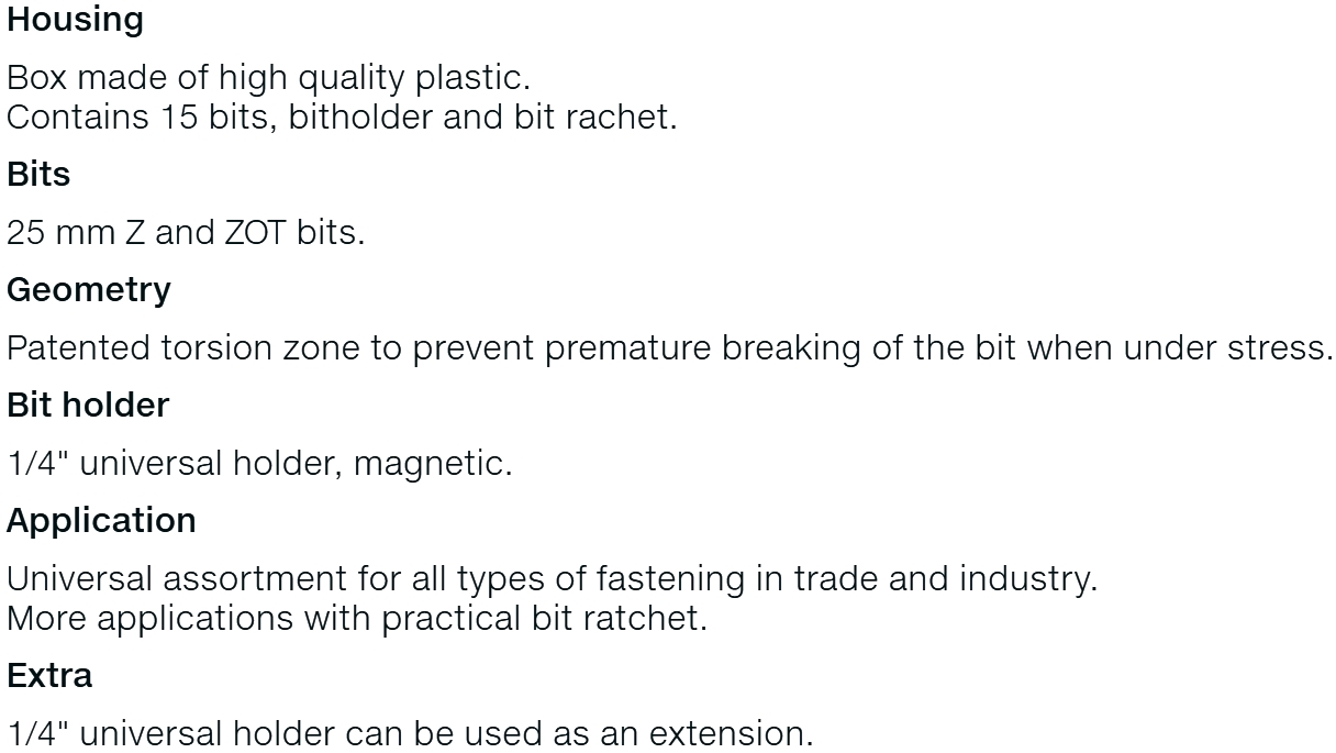 | 6025103 סט ביטים מקצועי למברגה - 17 יחידות - WIHA 26951 | WIHA | סט ביטים מקצועי למברגה - 17 יחידות - WIHA 26951 ♦ ביטים איכותיים מפלדה חזקה במיוחד♦ כולל תפסן ביט... כלי עבודה נטענים / חשמליים » מקדחים / ביטים / כרסמים | כמות |