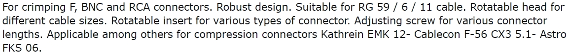 | 2959042 לוחץ דחיסה מקצועי לכבלים קואקסיאליים - KNIPEX 97 40 20 SB | KNIPEX | לוחץ דחיסה מקצועי לכבלים קואקסיאליים - KNIPEX 97 40 20 SB ♦ מתאים לכבלים : RG6 , RG59 , RG11♦ מתא... כלי עבודה ידניים » לוחצים לכבלים | כמות |