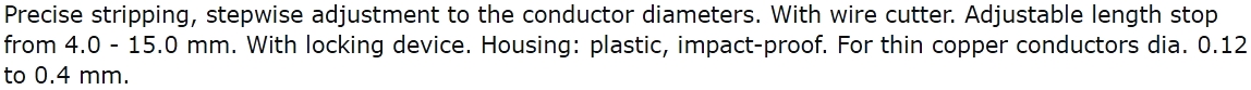 | 2189771 מסיר בידוד לכבלים - KNIPEX 12 80 040 SB - 0.12MM ~ 0.40MM | KNIPEX | מסיר בידוד לכבלים - KNIPEX 12 80 040 SB - 0.12MM ~ 0.40MM ♦ מבנה ארגונומי לאחיזה נוחה ויציבה&diams... כלי עבודה ידניים » מסירי בידוד לכבלים | כמות |
