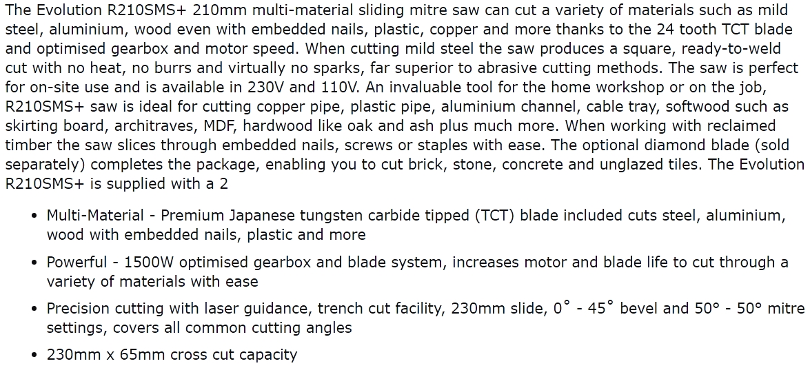 | 2807223 מסור גרונג / פנדל שולחני מקצועי EVOLUTION R210 SMS+ - 1.5KW | EVOLUTION | מסור גרונג / פנדל שולחני מקצועי EVOLUTION R210 SMS+ 210MM - 1500W ♦ הספק עבודה : 1500W&di... כלי עבודה נטענים / חשמליים » מסורים וכלי חיתוך חשמליים | לא ניתן להזמין - אזל המלאי |