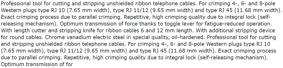 | 0173843 לוחץ רצ'ט אוניברסלי למחברי תקשורת - KNIPEX 97 51 12 | KNIPEX | לוחץ רצ'ט אוניברסלי למחברי תקשורת - KNIPEX 97 51 12 ♦ עבור מחברי תקשורת : RJ10 , RJ11 , RJ12 , RJ45&dia... כלי עבודה ידניים » לוחצים לכבלים | כמות |
