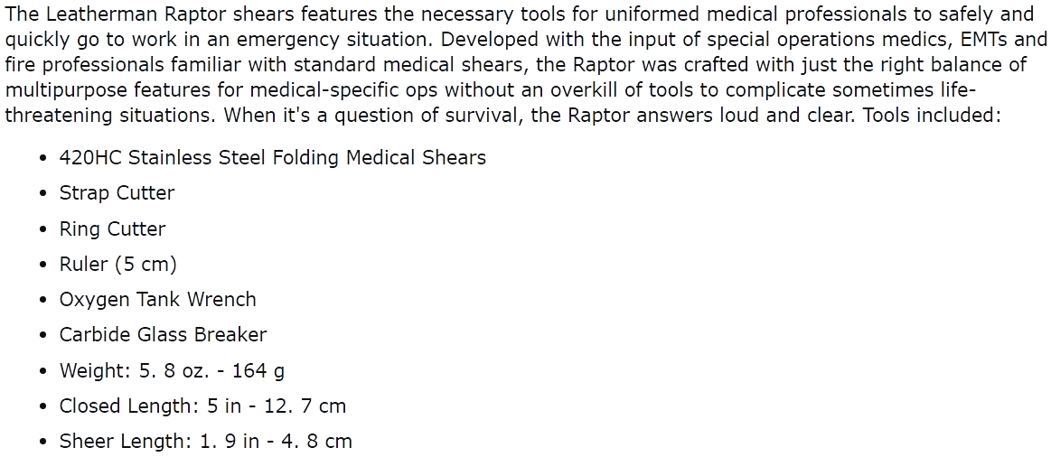 | 7043382 אולר רב-תכליתי לדרמן - 6 כלים - LEATHERMAN RAPTOR | LEATHERMAN | אולר רב-תכליתי לדרמן - 6 כלים - LEATHERMAN RAPTOR &nbs... כלי עבודה ידניים » סכינים , מספריים וכלי חיתוך | לא ניתן להזמין - אזל המלאי |