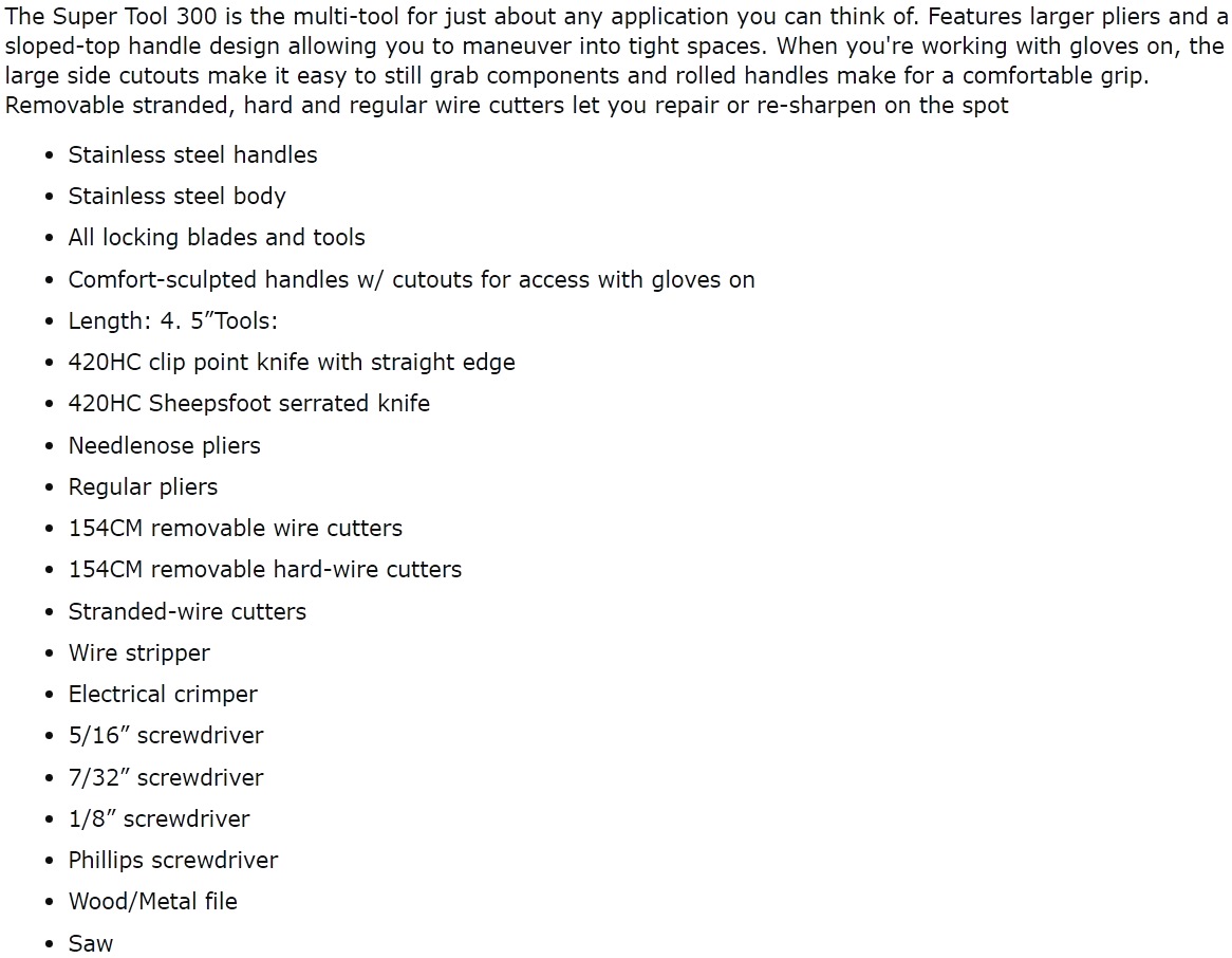 | 4453382 אולר רב-תכליתי לדרמן - 19 כלים - LEATHERMAN SUPER TOOL 300 | LEATHERMAN | אולר רב-תכליתי לדרמן - 19 כלים - LEATHERMAN SUPER TOOL 300 ... כלי עבודה ידניים » סכינים , מספריים וכלי חיתוך | כמות |