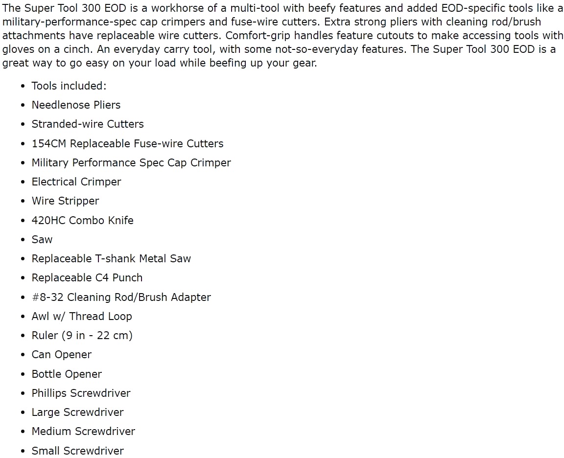 | 4043382 אולר רב-תכליתי לדרמן - 19 כלים - LEATHERMAN SUPER TOOL 300 EOD | LEATHERMAN | אולר רב-תכליתי לדרמן - 19 כלים - LEATHERMAN SUPER TOOL 300 EOD &nb... כלי עבודה ידניים » סכינים , מספריים וכלי חיתוך | כמות | |