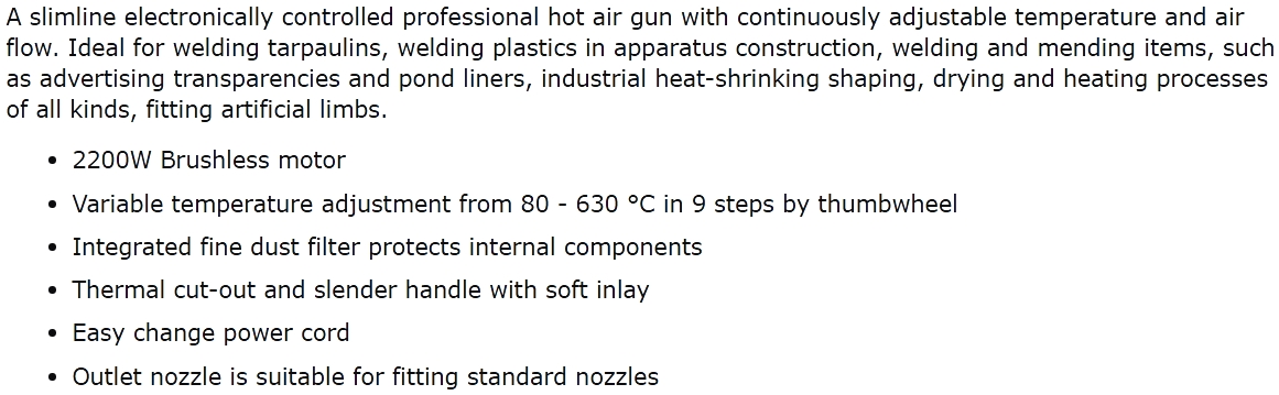 | 62181LT אקדח אוויר חם מקצועי - STEINEL HG 2420 E | STEINEL | אקדח אוויר חם מקצועי - STEINEL HG 2420 E ♦ הספק : 2200 וואט♦ זרימת אוויר : 400 ~ 150 לי... כלי עבודה נטענים / חשמליים » אקדחי אוויר חם | כמות |