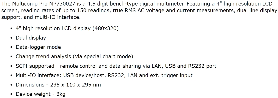 | 5857013 רב מודד שולחני דיגיטלי - MULTICOMP PRO MP730027 | MULTICOMP PRO | רב מודד שולחני דיגיטלי - MULTICOMP PRO MP730027 למפרט מלא לחץ כאן ... ציוד בדיקה ומכשירי מדידה » רבי מודדים וצבתות זרם | כמות |
