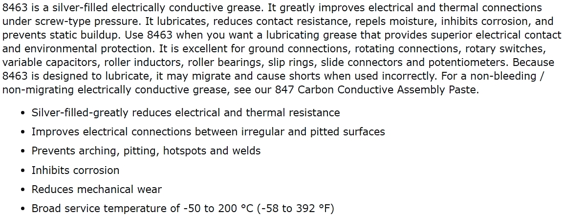 | 4143460 גריז מוליך חשמל - MG CHEMICALS 8463 | MG CHEMICALS | גריז מוליך חשמל - MG CHEMICALS 8463 ♦ מוליכות חשמלית ותרמית גבוהה במיוחד♦ הגנה נוספת מפני שחיקה, ... דבקים , תרסיסים וכימיקלים » דבקים , מדבקות וסרטי הדבקה | כמות |