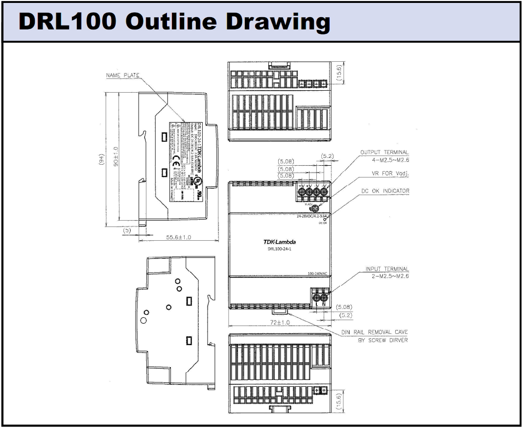 ספק כוח AC/DC לפס דין - 100W - 85V~264V ⇒ 24V / 4.2A TDK LAMBDA