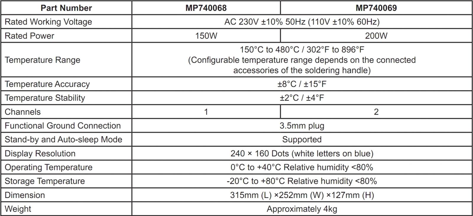♦ הספק תחנת ההלחמה : 150W